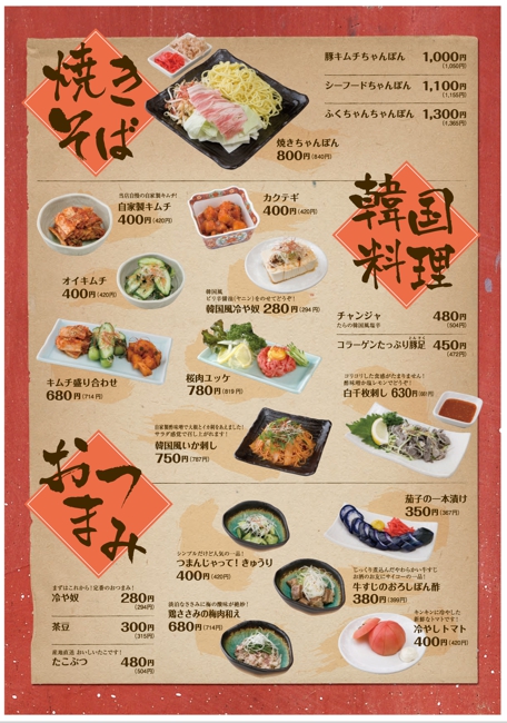 - やきそば・韓国料理・おつまみ